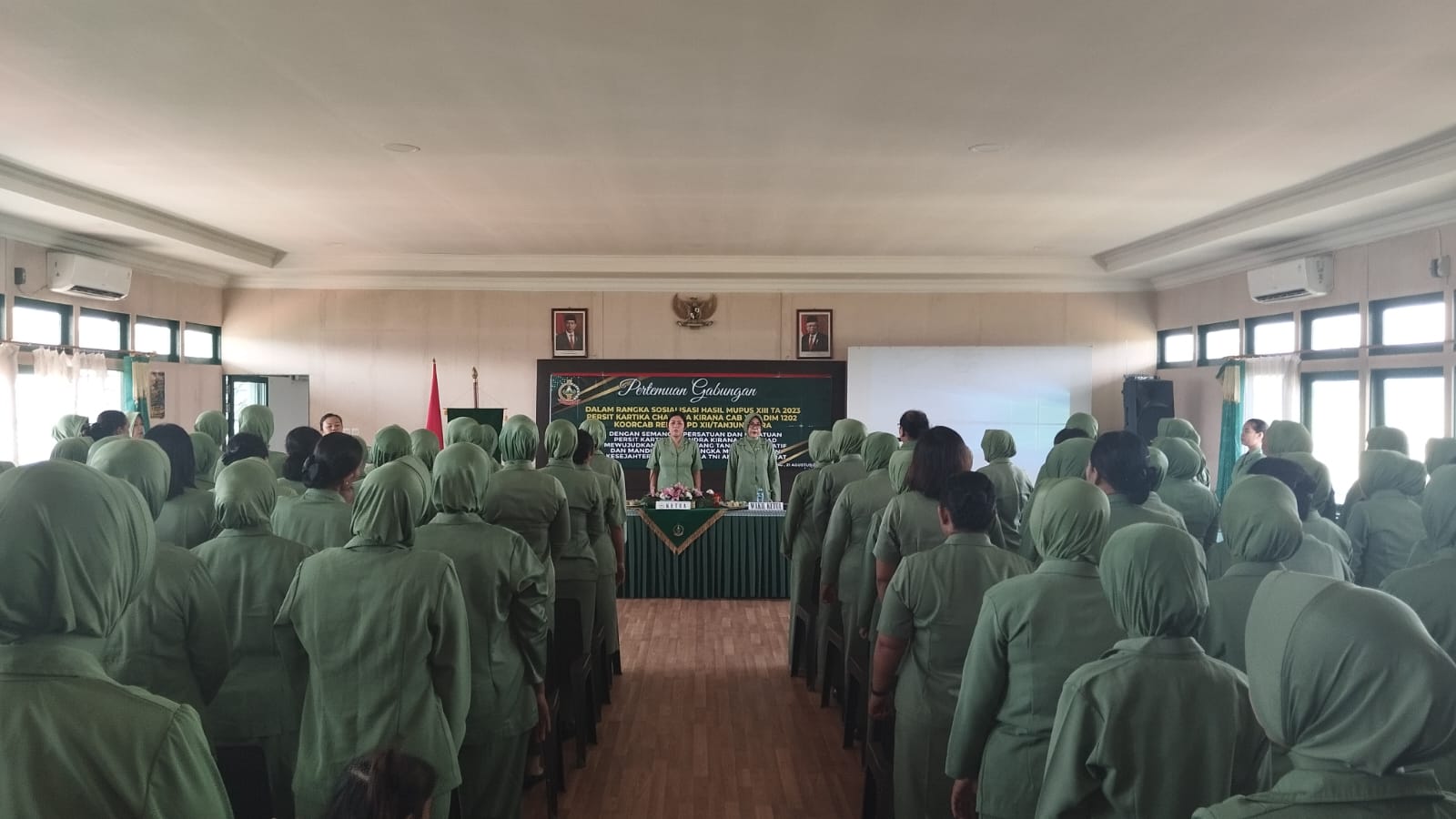 Ketua Persit KCK cab XLVI Ny . Rika Ferdy menyatakan Pertemuan gabungan dilakukan dalam rangka sosialisasi hasil musyawarah pusat Persit Kartika Chandra Kirana kepada anggota Persit KCK Cabang XLVI Kodim 1202/Skw.