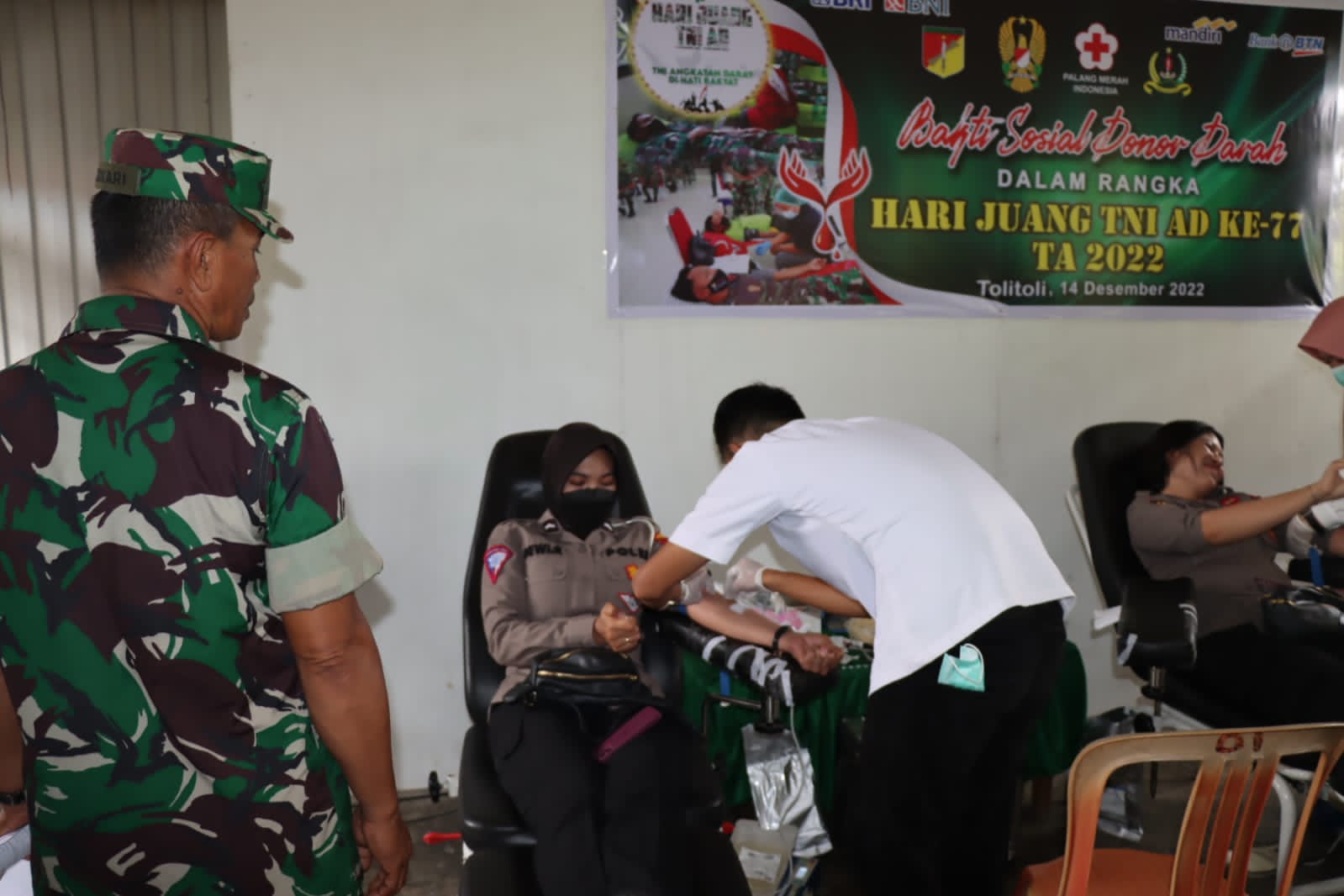 Donor darah yang dilaksanakan ini merupakan rangkaian memperingati HUT Juang TNI AD sebagai bentuk sosial membantu masyarakat yang membutuhkan serta Sinergitas TNI-POLRI di kabupaten Buol, dimana petugas kesehatan yang melaksanakannya dari Tim PMI bersama RSUD Mokoyurli Buol.