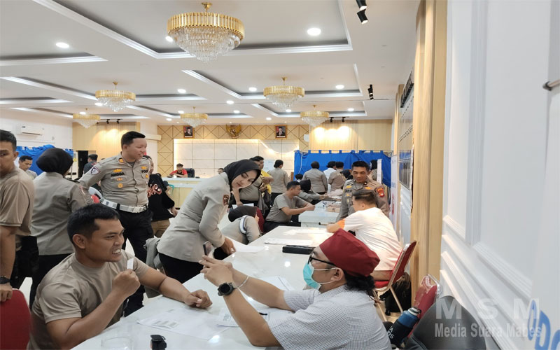 MediaSuaraMabes, Ketapang Kalbar – Bertempat di Aula Polres Ketapang, seluruh personel Polres Ketapang melaksanakan kegiatan Pemeriksaan Kesehatan Berkala (Rikkesla) yang diselenggarakan oleh Bidang Kedokteran dan Kesehatan (Biddokkes) Polda Kalimantan Barat, Senin (28/04).