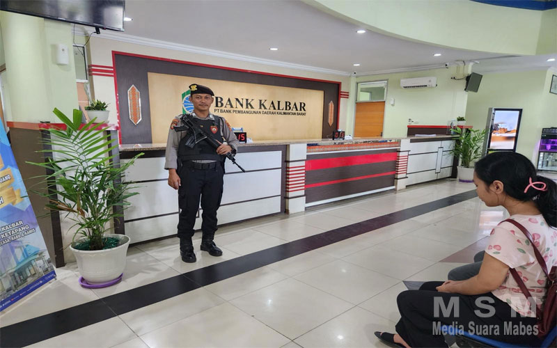 MediaSuaraMabes, Ketapang – Personel Satuan Samapta Polres Ketapang, Brigadir Polisi Rizki, melaksanakan kegiatan pengamanan di objek vital Bank Kalimantan Barat (Kalbar) yang berlokasi di Jalan Brigjen Katamso, Kecamatan Delta Pawan, Kabupaten Ketapang, pada Jumat (04/07).