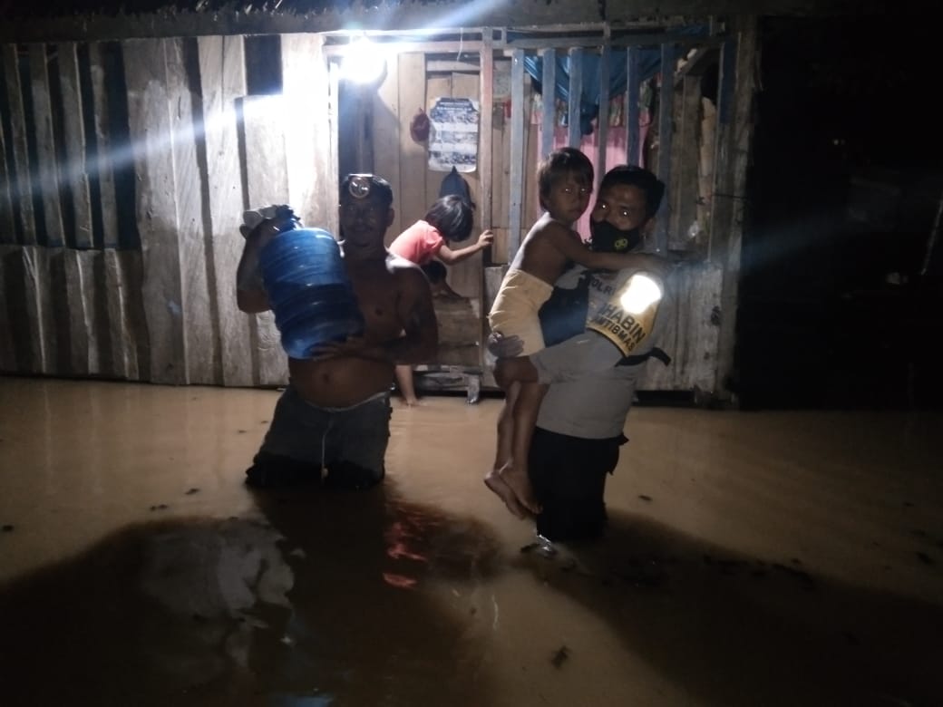 Melakukan patroli untuk mengimbau warga tetap waspada dan siaga, inventaris dampak dan memberi bantuan kepada warga korban banjir tambah Kapolres.