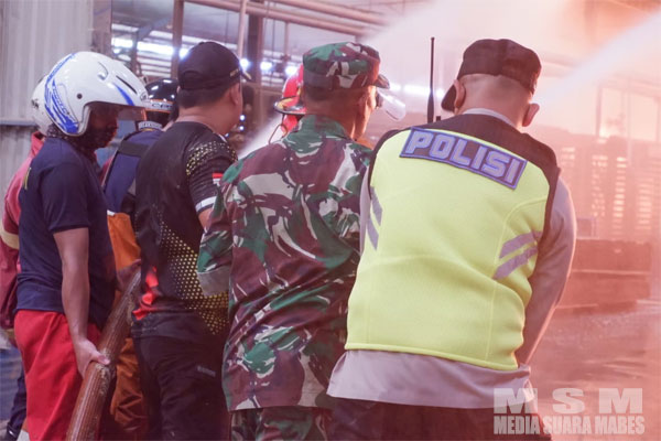 MediaSuaraMabes, Batang – Pabrik kayu lapis PT Java Wood Indonesia (JWI) yang berlokasi di Kecamatan Banyuputih, Kabupaten Batang, mengalami kebakaran pada pagi hari Minggu (30/4/2023). Hingga pukul 11.45 WIB, sejumlah personel TNI Polri membantu tim pemadam kebakaran berusaha memadamkan api yang masih terlihat.