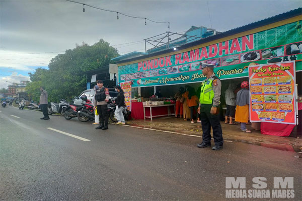 Seperti pada Senin sore (27/3/2023) tampak personil Sat Lantas dan Sat Samapta melaksanakan pengamanan dan pengaturan lalu lintas di pasar juadah.