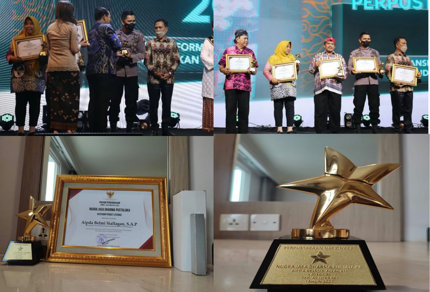 Penghargaan tersebut diserahkan langsung oleh Kepala Perpustakaan Nasional Muhammad Syarif Bando kepada Aipda Belmi Siallagan pada acara Malam Gemilang Perpusnas 2022 yang dilaksanakan di Grand Ballroom, Jakarta pada Senin malam tanggal 14 November 2022.