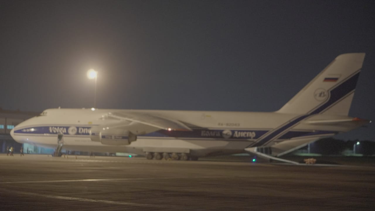 SuaraMabes, Palembang – Pesawat Kargo Raksasa Antonov 124-100 mendarat dengan mulus di Bandara Sultan Mahmud Badaruddin II, Palembang, Sumatera Selatan dengan membawa muatan barang kargo peralatan industri, Senin (07/06/2021)