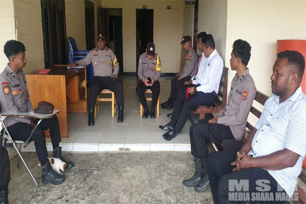 “Jangan lengah, tingkatkan pengamanan dengan body sistem, saling membackup (saling melindungi satu dengan lainnya). Periksa dan awasi dengan ketat ketika ada Masyarakat yang hendak keluar masuk Mapolsek Mapia”ujar kapolsek