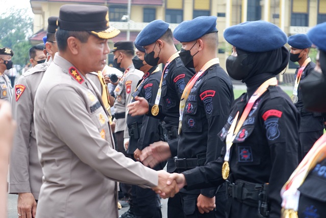 MediaSuaraMabes, Pontianak Kalbar – Kepala Kepolisian Daerah Kalimantan Barat Irjen Pol Suryanbodo Asmoro memberikan selamat kepada 68 personel Polda Kalbar yang berprestasi.