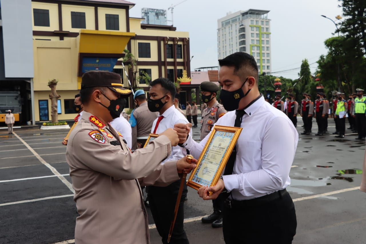 MediaSuaraMabes, Bandar Lampung – Pada kesempatan Apel Pagi Senin, 21 Februari 2022, sebanyak 43 personel Polri Polresta Bandar Lampung menerima penghargaan dari Kapolresta Bandar lampung Kombes Pol Ino Harianto, S.I.K. atas prestasi dan keberhasilannya Baik dalam Bidang tugasnya ataupun di luar bidang Tugasnya.