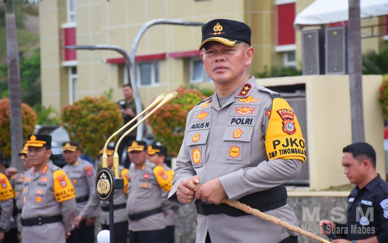 MediaSuaraMabes, Palu – Kapolda Sulawesi Tengah (Sulteng) Irjen Pol Dr. Agus Nugroho, memimpin Apel pergeseran pasukan pengamanan TPS Pilkada serentak 2024 di Provinsi Sulawesi Tengah yang berlangsung di Lapangan Apel Mapolda Sulteng, Sabtu (23/11/2024)