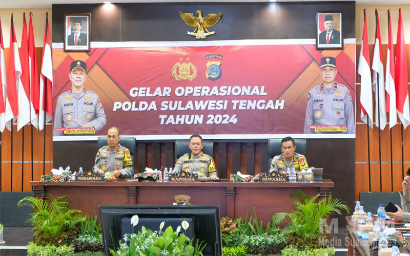 Hadir dalam pelaksanaan Gelar Operasional Wakapolda Sulteng Brigjen Pol. Soeseno Noerhandoko, SIK, Irwasda Kombes Pol. Asep Ahdiatna, SIK, MH, pejabat utama Polda Sulteng dan kapolres kapolresta jajaran.