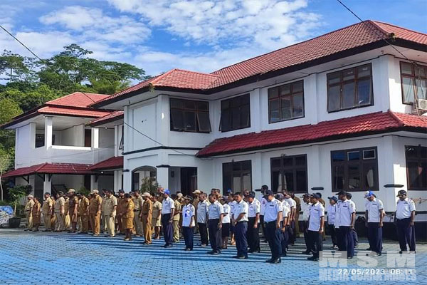 MediaSuaraMabes, Waropen – Pj Sekda Waropen Jaelani, AP, M.Si berkesempatan memimpin Apel Pagi di Lingkungan Pemda Kabupaten Waropen di Kantor Bupati, Senin (22/5). Mewakili Bupati yang tidak berkesempatan hadir, Sekda Jaelani mengapresiasi ASN maupun Pimpinan OPD yang senantiasa memperhatikan waktu apel, dan sebagai teladan bagi ASN lainnya.