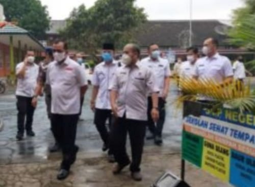 MediaSuaraMabes, Baturaja – Hari pertama kegiatan Pembelajaran Tatap Muka Terbatas ( KPTMP ) di Kota Baturaja Kabupaten Ogan Komering Ulu (OKU) Propinsi Sumatera Selatan, pelaksana harian Bupati OKU Drs.H.Edward Candra.M.H., bersama Kepala Dinas Pendidikan OKU H.Teddy Meilwansyah, S.STP., M.M., M.Pd., menyempatkan diri meninjau langsung pelaksanaan proses belajar mengajar tatap muka dengan tetap mematuhi Protokol Kesehatan.