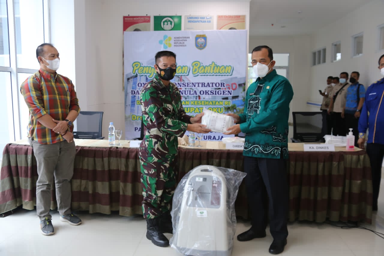 PLH Bupati OKU Drs. H. Edward Candra, M.H., dalam sambutannya menyampaikan terimakasih atas bantuan consentrator oksigen yang diberikan Kemenkes RI, Bantuan ini tentunya akan sangat bermanfaat bagi rumah sakit dan faskes di Kabupaten OKU, yang saat ini merawat pasien konfirmasi Covid-19 dengan kondisi sedang-berat.