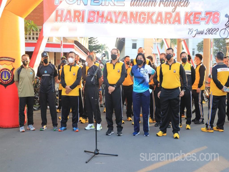 MediaSuaraMabes, Yogyakarta – Masih dalam rangka menyambut Hari Bhayangkara Ke-76, Polda DIY menggelar olah raga bersama jalan santai sejauh 4,6 km dan sepeda gembira dengan jarak 16,48 km, Minggu (19/06/2022).