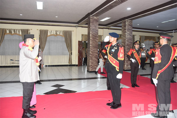 Selain tradisi pedang pora, pelepasan Irjen Pol. Helmy Santika juga diiringi drum band oleh gabungan personil jajaran Polda Gorontalo di halaman Mapolda. Selasa(04/04)