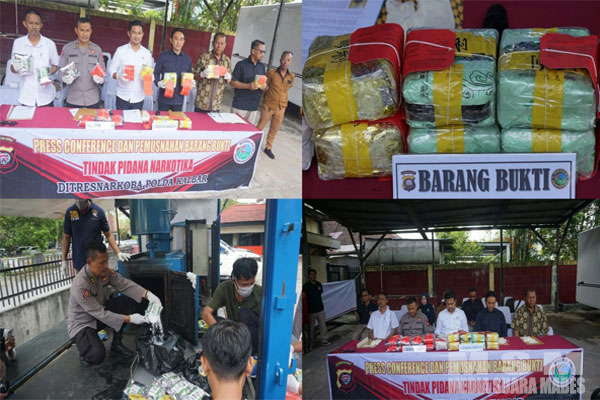Pemusnahan barang bukti Narkotika tersebut dipimpin langsung oleh Dirresnarkoba Polda Kalbar Kombes Pol Yohanes Hernowo diwakili Wadirresnarkoba Polda Kalbar AKBP Abdul Hafidz dan dihadiri Kabidhumas Polda Kalbar Kombes Pol R. Petit Wijaya diwakili Kasubbid Penmas Bidhumas Polda Kalbar AKBP Prinanto, Kabid Pemberantas BNNP Kalbar Kombes Pol Drs. Made Sugawa, Jaksa Kejati Kalbar Jumadi, Kasi Narkotika dan Barang Lainnya Christian S. Gunanto.