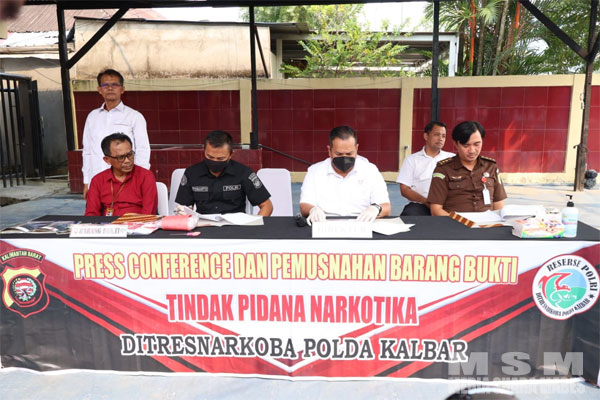 MediaSuaraMabes, Pontianak – Bertempat di Kantor Direktorat Reserse Narkoba Polda Kalbar yang beralamat di Jl.Zainudin No.1 telah diselenggarakan Press Conference dan Pemusnahan Barang bukti Tindak Pidana Narkotika yang diselenggarakan oleh Direktorat Reserse Narkoba Polda Kalbar, Rabu (16/8).