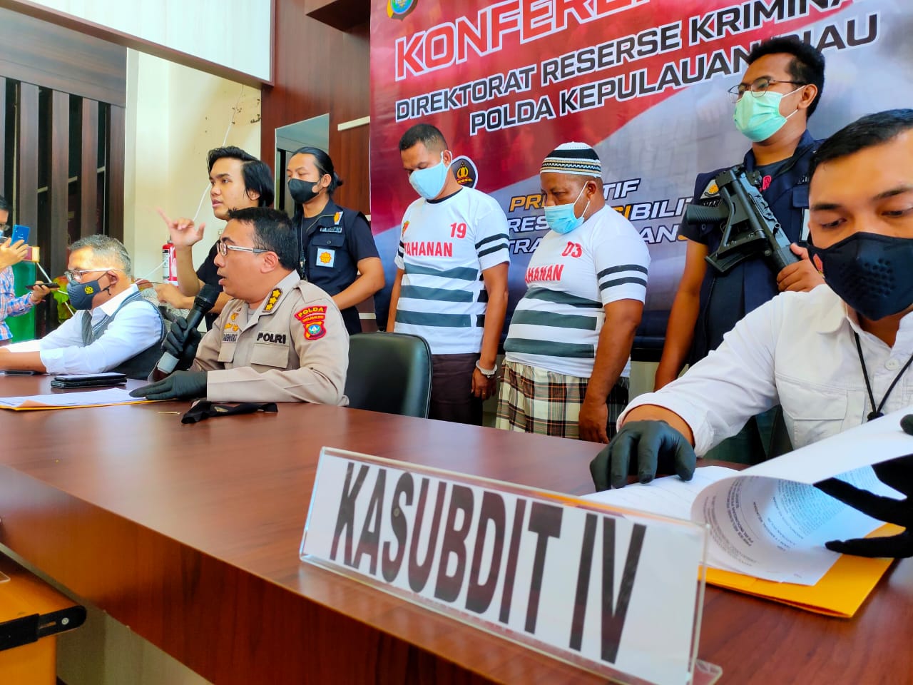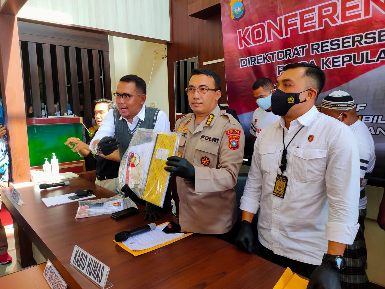 MediaSuaraMabes, Batam – Empat orang tersangka Pencurian dengan kekerasan dan Penadahan berinisial CB alias C, AT alias T, SA alias A dan OS alias O berhasil diamankan oleh Subdit III Dit Reskrimum Polda Kepri. Hal tersebut disampaikan oleh Dir Reskrimum Polda Kepri Kombes Pol Arie Dharmanto, S.Sos., S.Ik., didampingi Kabid Humas Polda Kepri Kombes Pol Harry Goldenhardt S., S.IK., M.Si. saat Konferensi Pers di Polda Kepri. Senin (7/6/2021).
