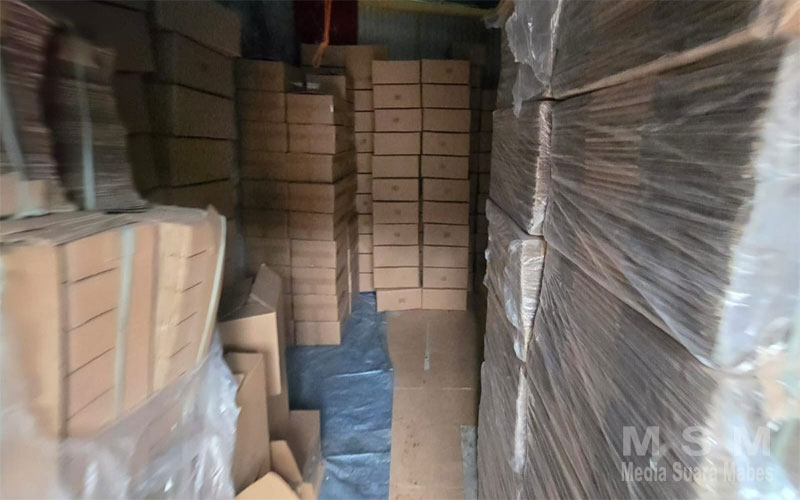 •Ratusan karton botol kosong, label, serta tutup botol berbagai merek