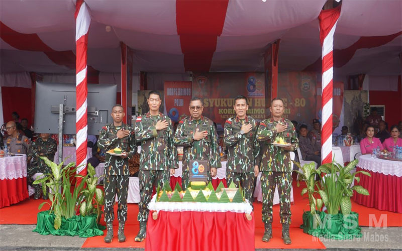 MediaSuaraMabes, Manokwari – Kepolisian Daerah Papua Barat menggelar acara syukuran dalam rangka memperingati Hari Ulang Tahun (HUT) ke-80 Korps Brigade Mobile (Brimob) Polri. Peringatan tahun ini mengangkat tema “Brimob Presisi Untuk Masyarakat”, yang mencerminkan komitmen Brimob untuk terus hadir sebagai garda terdepan dalam menjaga stabilitas keamanan dan ketertiban masyarakat. Jumat (14/11)