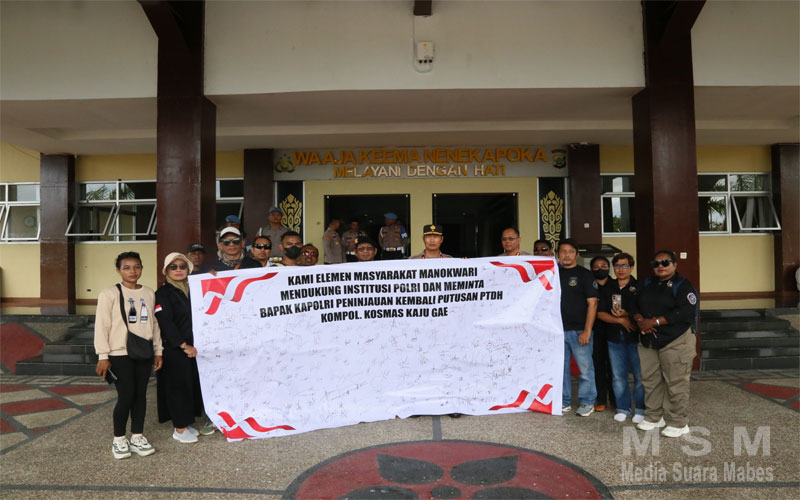 MediaSuaraMabes, Manokwari Papua Barat – Polda Papua Barat hari ini menerima aspirasi dari elemen masyarakat yang menolak terkait pemecatan 7 anggota Brimob yang terlibat dalam kasus penabrakan pengemudi ojek online (ojol) Affan Kurniawan hingga tewas saat demonstrasi di Jakarta,Senin 08/09/2025.