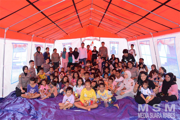 Adapun sasaran trauma healing diberikan kepada anak-anak dan ibu-ibu. Terlihat mereka tertawa dan tersenyum lepas dengan kegiatan trauma healing yang diberikan anggota Polri.