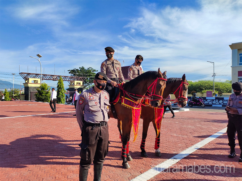Direktur Samapta Polda Sulteng Akbp Richard B. Pakpahan, S.I.K., M.H dalam keterangannya rabu (08/06/2022) mengatakan 2 ekor Satwa Turangga (Kuda) dari Ditpolsatwa Korsabhara Baharkam Polri bernama bernama Ferdinand B berumur 12 dan Medinas’s Boy berumur 10 tahun berkelamin jantan, memiliki jenis ras wormblood dan berasal dari belanda lengkap dengan kendaraan.