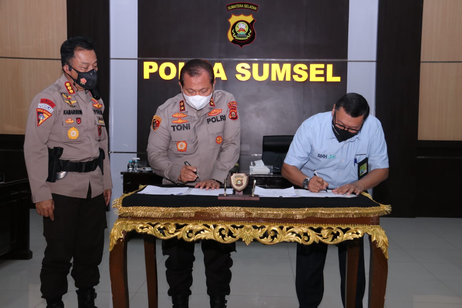 MediaSuaraMabes, PALEMBANG — Kepolisian Daerah (Polda) Sumatera Selatan (Sumsel) gandeng dengan PT. Pertamina Gas (Pertagas) Operation West Region yang ditandai dengan penandatangan Pedoman Kerja Teknis di ruang Rekonfu Mapolda Sumsel. Selasa, (8/1).