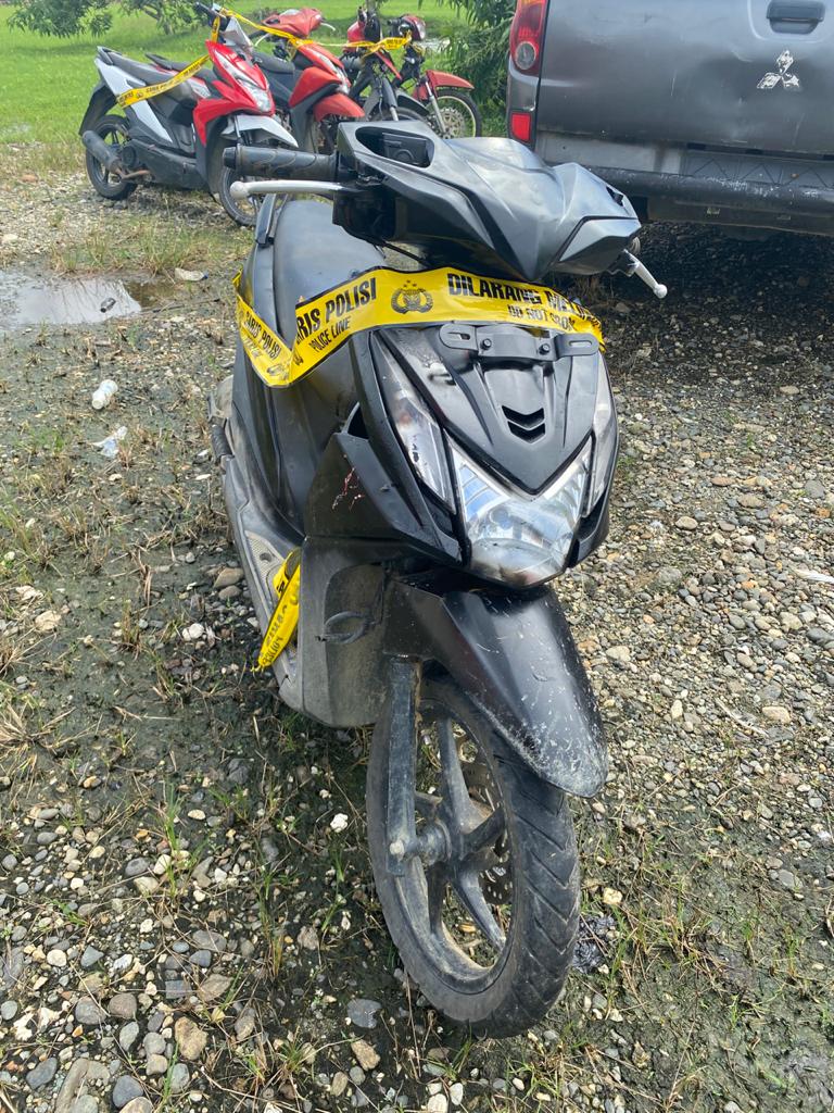 Barang bukti yang diamankan oleh Polsek Nabar, 1 Unit Sepeda Motor Honda Beat, Nomor Rangka MH1JFN21XEK517876, Nomor Mesin JFM2E-1526699, Warna Merah (diubah Tersangka menjadi Warna Hitam), TNKB PA 3820 KP.