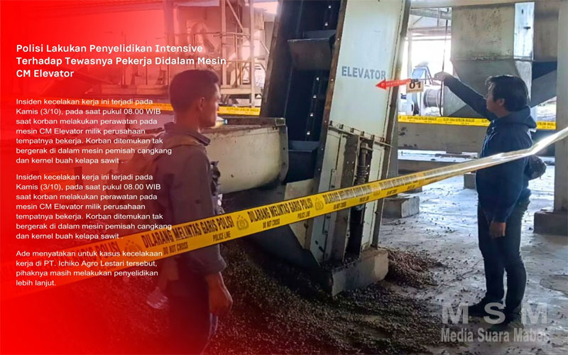 MediaSuaraMabes, Kubu Raya – Tragis, seorang karyawan pengolahan kelapa sawit PT. Ichiko Agro Lestari tewas mengenaskan saat melakukan perawatan mesin alat pemisah cangkang dan kernel buah kelapa sawit (CM Elevator). Korban tersebut seorang pria berinisial S (23) warga Kecamatan Kubu Kabupaten Kubu Raya.