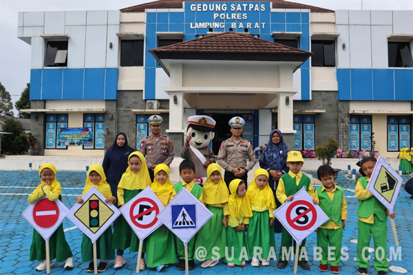 Dengan Bertemakan “Polisi sahabat anak,” Polres Lampung Barat mengenalkan berbagai pengetahuan tentang Lalu Lintas Sejak dini kepada anak anak TK Aisyiyah Bustanul Athfal dengan Mengenalkan Rambu rambu lalu lintas, cara penggunaan Helm yang baik dan benar serta mengajarkan tentang tertib berlalu lintas.