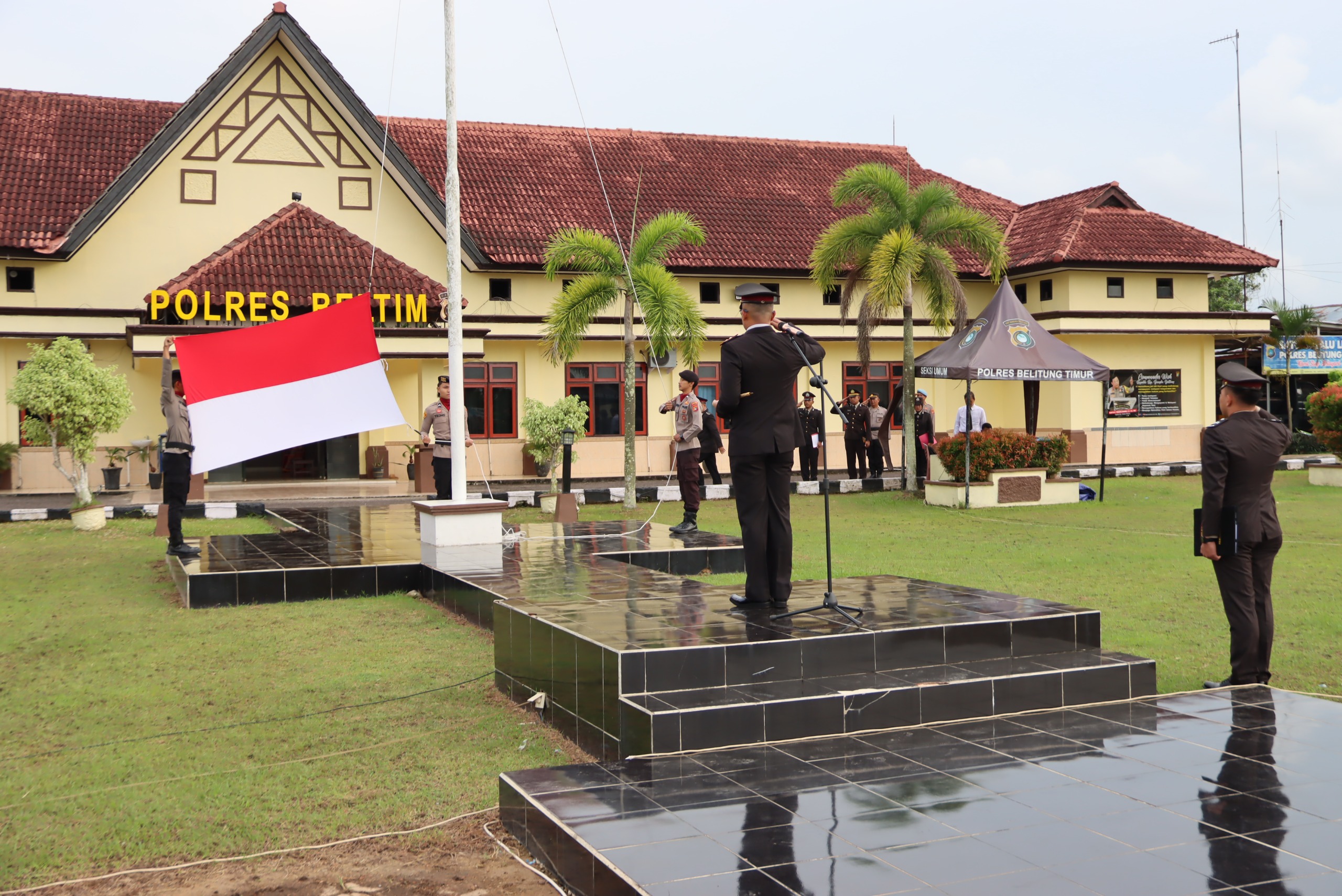 Pelaksanaan upacara yang dilaksanakan berlangsung secara khidmat. Dibuka dengan pembacaan Undang-Undang Dasar Republik Indonesia dan dilanjutkan dengan pengibaran Bendera Merah Putih oleh personel Polres Belitung Timur.