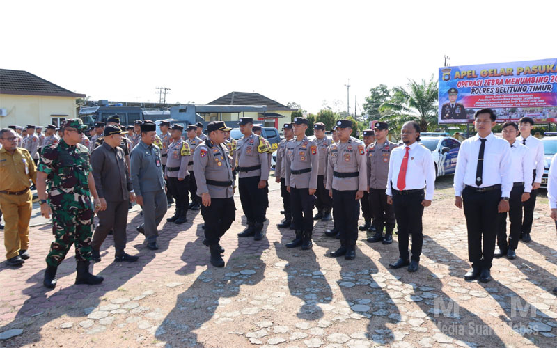 Pelaksanaan apel gelar pasukan ini dilaksanakan serentak di seluruh Polda dan Polres se-indonesia dalam rangka mengecek kesiapan Operasi Kepolisian terpusat tahun 2024 serta untuk mengetahui jumlah kuat personil serta peralatan yang digunakan dalam Operasi Zebra Menumbing tahun 2024, dalam upacara gelar Pasukan ini juga Kapolres Belitung Timur didampingi Forkopimda Kab Beltim melaksanakan pengecekan pasukan dan kendaraan-kendaraan yang akan digunakan dalam Operasi Zebra Menumbing Tahun 2024.