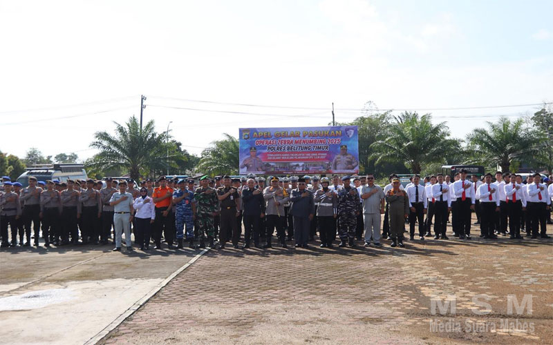 MediaSuaraMabes, Babel – Polres Belitung Timur melaksanakan Gelar Pasukan Operasi Zebra Menumbing tahun 2025 yang dipimpin oleh Kapolres Belitung Timur AKBP Indra Feri Dalimunthe, SH, SIK, MH, MM di Halaman Depan Mapolres Belitung Timur, Senin (17/11/2025).