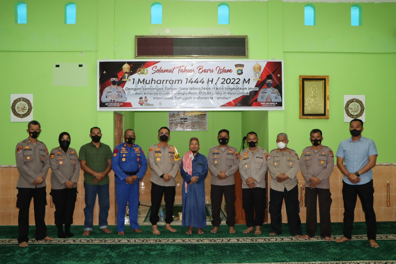 MediaSuaraMabes, Beltim – Polres Belitung Timur Polda Kep. Babel menggelar Peringatan Tahun Baru Islam 1 Muharram 1444 Hijriah di Masjid Shirataal Mustaqim Mapolres Belitung Timur, Kamis, (04/8/2022).