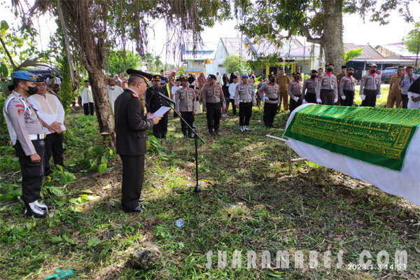 “Atas nama pimpinan Polri menyampaikan terimakasih dan penghargaan atas pengabdian dan dedikasi Almarhum semasa hidupnya menjalankan tugas sebagai Anggota Polri, semoga amal ibadah almarhum mendapat balasan dari Allah SWT” tambah Irup mengakhiri sambutannya.