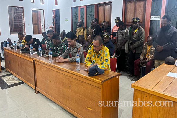 MediaSuaraMabes, Dogiyai – Terkait dengan adanya berita Hoax yang beredar di masyarakat tentang adanya racun yang ada dimakanan yang dijual, Wakapolres Dogiyai AKP Michael L Ayomi S, Sos bersama Pamatwil Kompol Irianto Jhon melakukan pertemuan serta penandatanganan penyelesaian permasalahan serta sidak pasar guna memastikan kesehatan dan keamanan masyarakat yang bertempat di Kantor Bupati Kab. Dogiyai (15/12/2022)