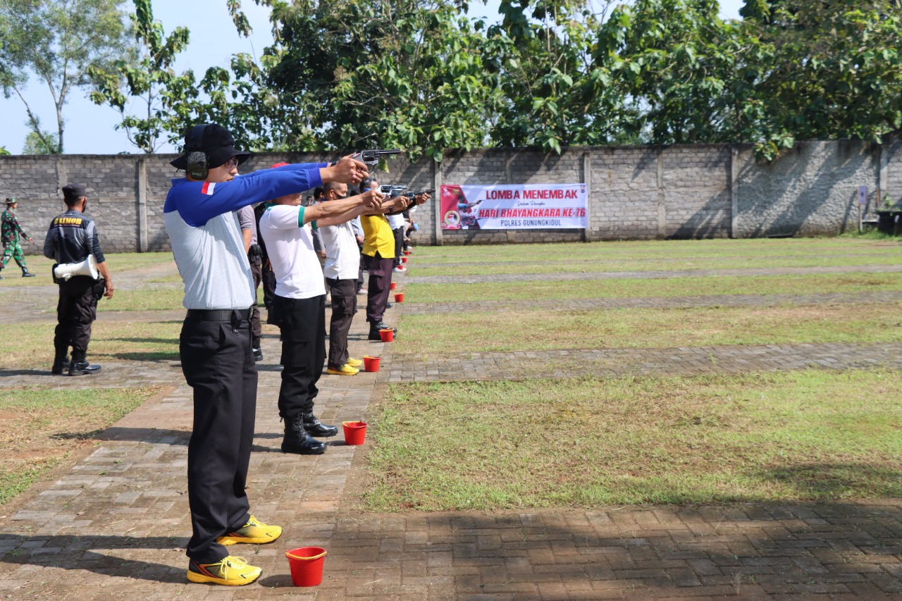 MediaSuaraMabes, Gunungkidul, Yogyakarta – Dalam rangka menyambut HUT Bhayangkara Ke 76, Polres Gunungkidul gelar kompetisi menembak di lapangan tembak Kodim 0730/Gunungkidul, Sabtu (11/06/2022).