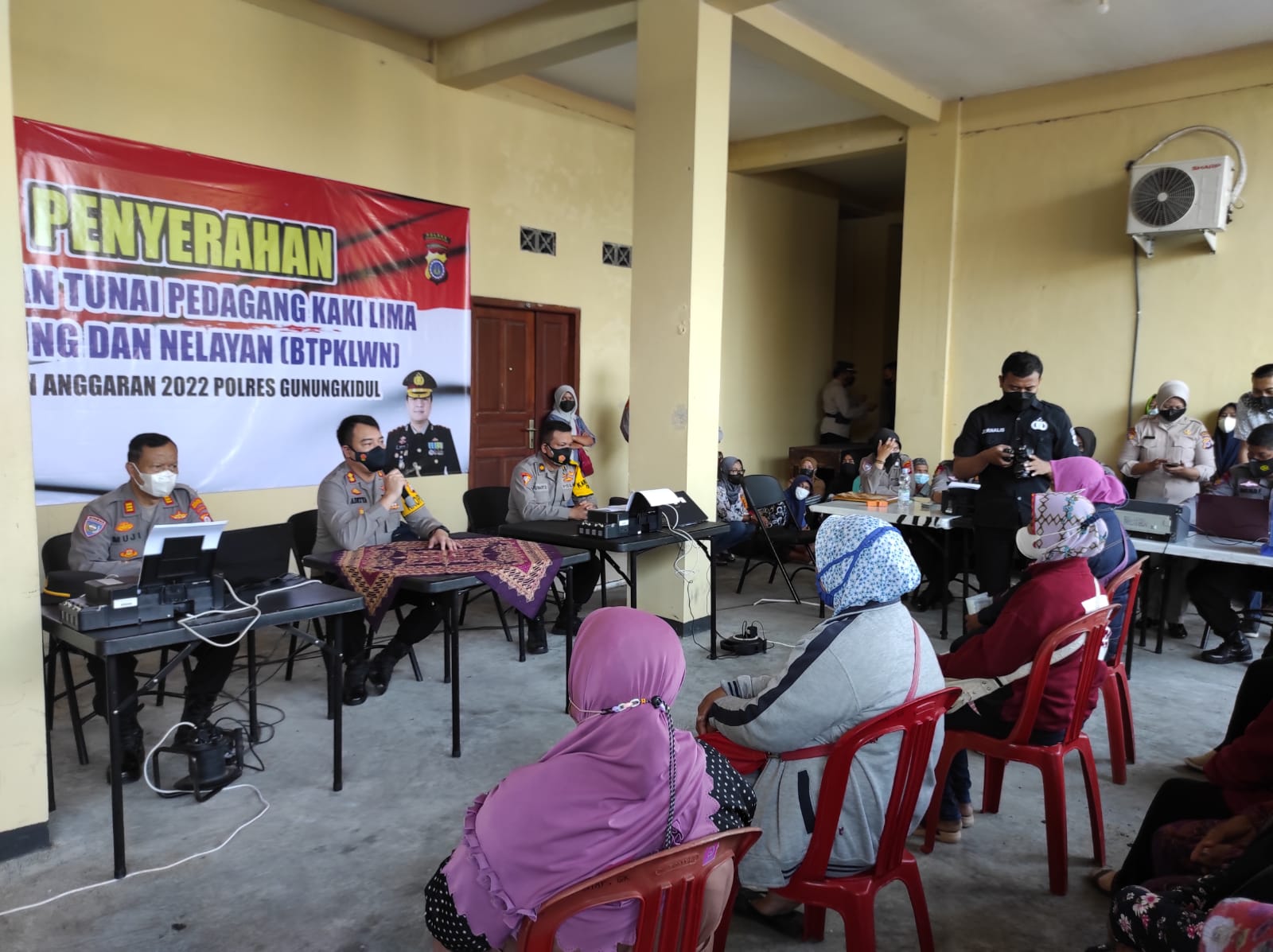 Polres Gunungkidul Salurkan Bantuan Tunai PKL, Warung dan Nelayan