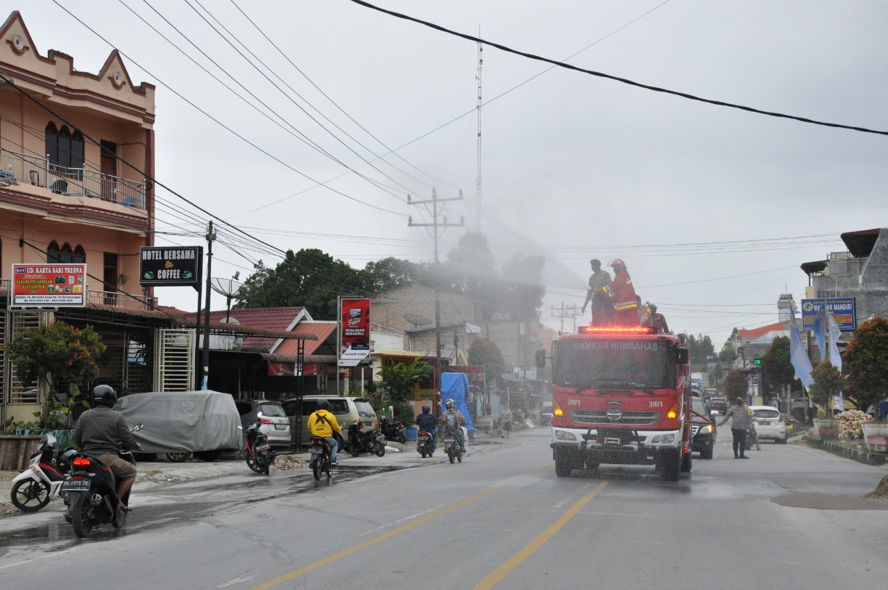 Kapolres Humbahas menjelaskan penyemprotan melibatkan berbagai pihak sebagai bentuk solidaritas dan sinergi mulai dari Personil Polres, Koramil TNI, Sat Pol PP dan Petugas Damkar.