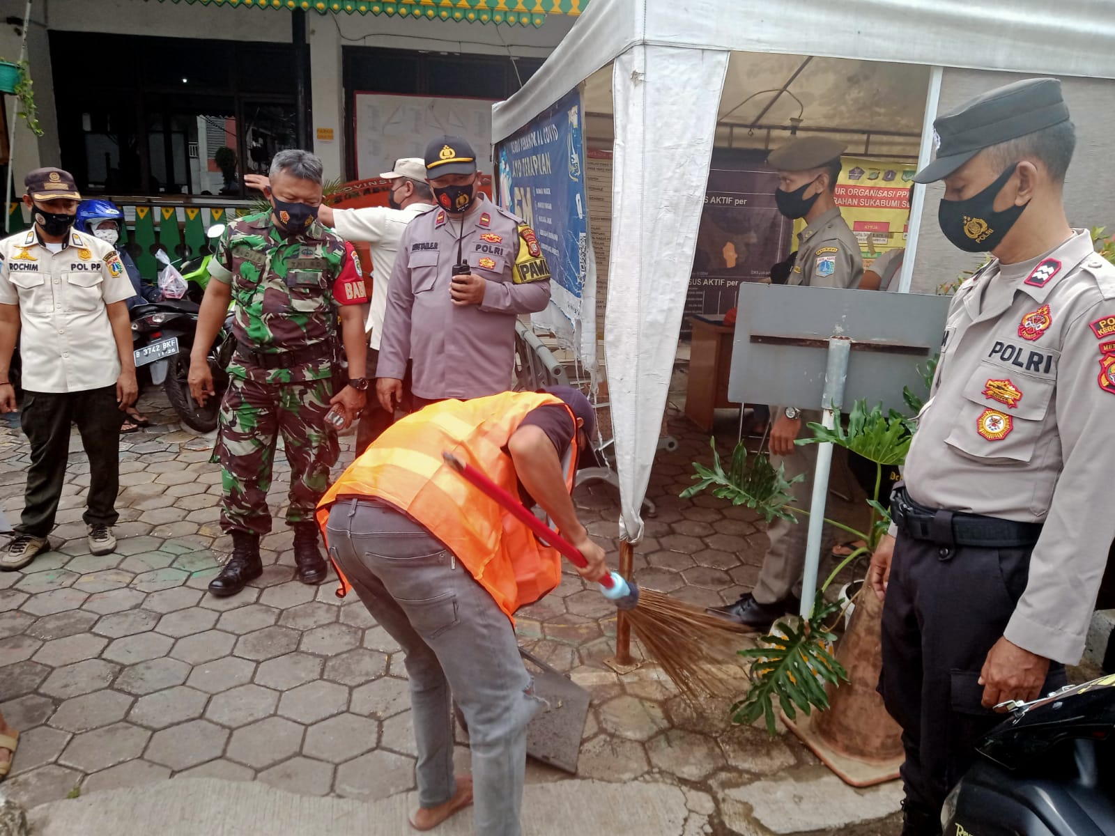 Pelaksanaan kegiatan operasi yustisi tersebut dilaksanakan di depan pasar pos pengumben Sukabumi selatan Jakarta Barat, sebanyak 30 personel gabungan diterjunkan dalam operasi yustisi yang terdiri dari TNI-Polri, Satpol PP, Dishub,FKDM dan citra bhayangkara