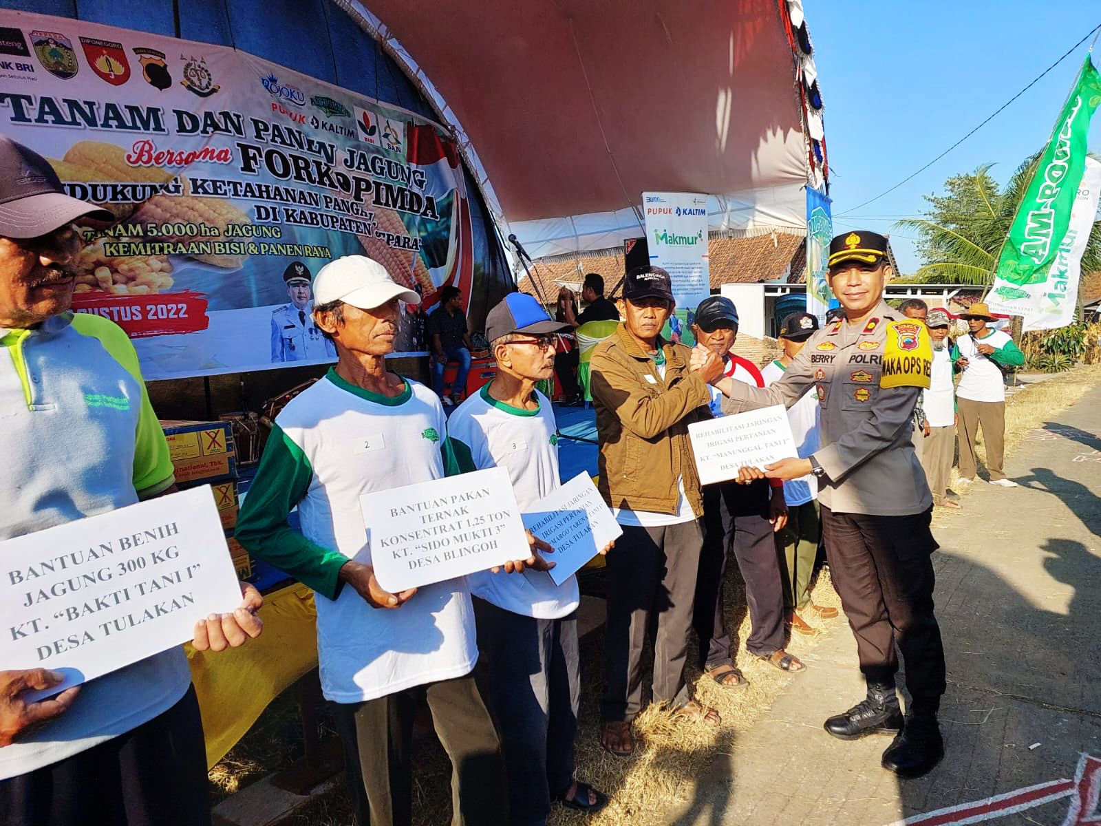 MediaSuaraMabes, Jepara – Dalam rangka mendukung program pemerintah untuk menjaga ketahanan pangan, Kapolres Jepara diwakili Wakapolres Kompol Berry, ST., SIK., bersama jajaran forkopimda Jepara melaksanakan kegiatan penanaman jagung di desa Tulakan Kecamatan Donorojo Kabupaten Jepara, Kamis (11/08/2022).