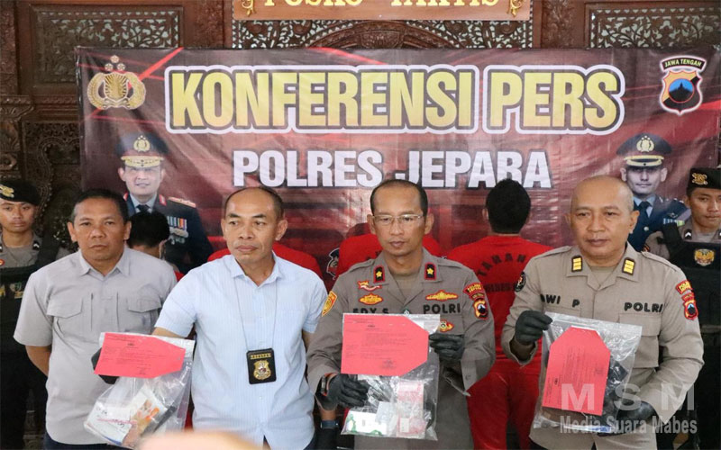 MediaSuaraMabes, Jepara – Kepolisian Resor (Polres) Jepara, Polda Jawa Tengah, berhasil mengamankan lima tersangka kasus penyalahgunaan narkotika dengan barang bukti dua puluh paket sabu-sabu seberat 5,32 gram dan delapan paket obat keras jenis pil berlogo huruf Y dengan total 84 butir yang ditaksir bernilai puluhan jutaan rupiah.