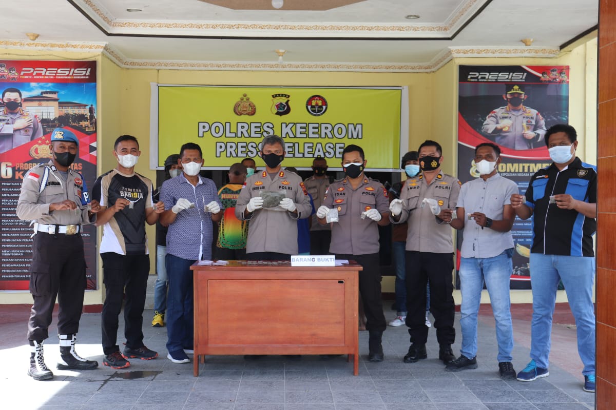 MediaSuaraMabes, Polres Keerom – Bertempat di Mapolres Keerom Jl. Bhayangkara Arso Swakarsa Kab. Keerom, Kapolres Keerom AKBP Christian Aer,SH,S.IK pimpin pelaksanaan giat Press Release Terkait pengungkapan Khasus 48 Bungkus Narkotika Jenis Ganja dan 1 bungkus pelastik besar Narkotika Jenis Ganja, oleh Sat Narkoba Polres Keerom. Sabtu (28/08)