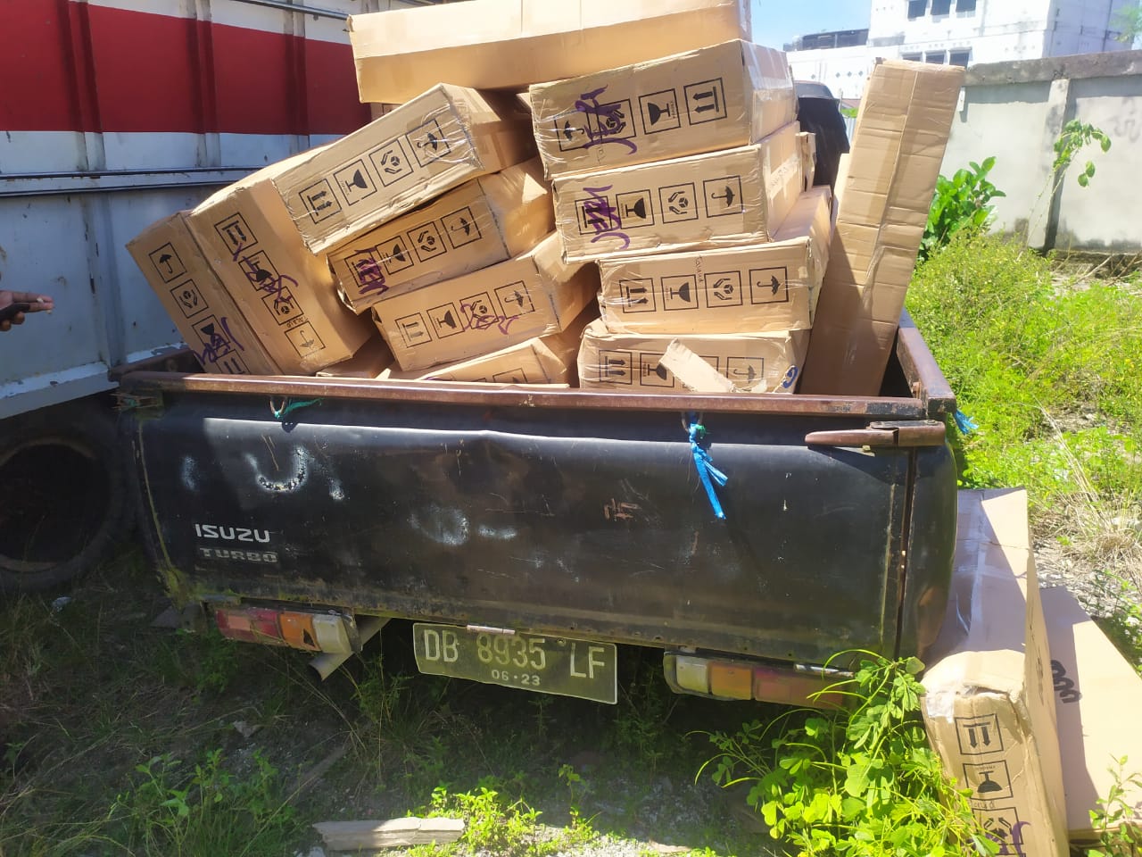 Di temukan 20 Dos miras jenis cap tikus yg dikemas dalam plastik bening terisi dalam dos masing-masing dos berisi 25 liter, sementara dimuat dalam mobil panther pick up yang akan dibawa ke kel. beo dan berdasarkan informasi bahwa miras jenis Cap tikus Tersebut dimuat di mobil box dari pelabuhan penyeberangan Bitung dengan menggunakan Kapal Fery Labuan Haji dan selanjutnya di turunkan di pelabuhan Fery Melonguane Kab. Kepl. Talaud