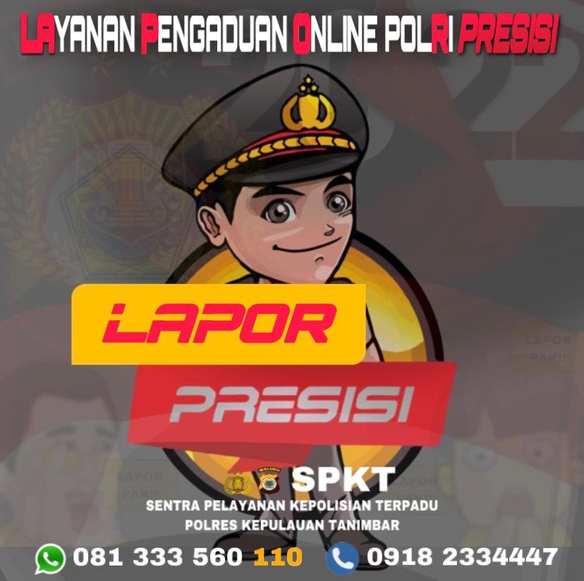 MediaSuaraMabes, MALUKU — Kepolisian Resort Kepulauan Tanimbar meluncurkan inovasi baru berupa Pelayanan Pengaduan Online Presisi atau disingkat dengan nama Lapor Presisi. Pelayanan ini melalui aplikasi whatsaap dengan nomor 081 333 560 110.