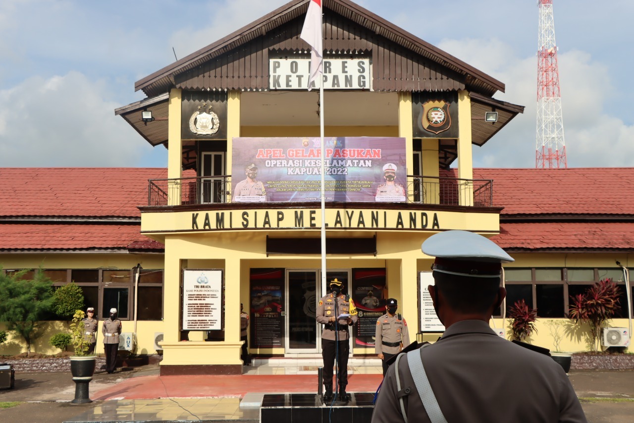 Polres Ketapang, Polda Kalbar, Ketapang – Polres Ketapang menggelar Apel Gelar Pasukan Operasi Keselamatan Kapuas 2022 di lapangan apel Mapolres Ketapang, Selasa (01/03/2022). Apel ini dipimpin langsung oleh Kapolres Ketapang AKBP Yani Permana, S.I.K., M.H. Kegiatan yang diikuti oleh jajaran Polres Ketapang Polda Kalbar, Kodim 1203 Ketapang, Dinas Perhubungan (Dishub), BPBD Ketapang serta Satuan Polisi Pamong Praja (Satpol PP) Kabupaten Ketapang ini mengambil tema “ Melalui Operasi Keselamatan Kapuas 2022 Kita Wujudkan Budaya Tertib Berlalulintas Untuk Menciptakan Kamseltibcarlantas Yang Mantap dan Pencegahan Penyebaran Covid-19 Dengan Meningkatkan Disiplin Protokol Kesehatan ”.