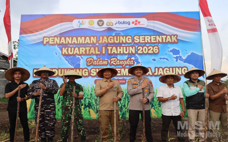 MediaSuaraMabes, Ketapang Kalbar – Polres Ketapang melaksanakan kegiatan Penanaman Jagung Serentak Kuartal I Tahun 2026 sebagai bentuk dukungan terhadap program swasembada jagung nasional. Kegiatan tersebut dilaksanakan di wilayah Kecamatan Delta Pawan, Kabupaten Ketapang, dan dihadiri oleh unsur Forkopimda, tokoh masyarakat, kelompok tani, serta instansi terkait (07/03/2026).