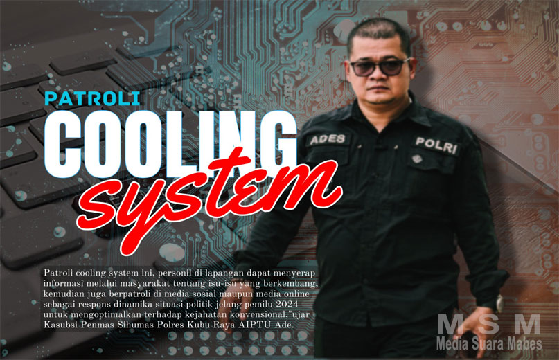 ” Jadi patroli cooling system ini personil di lapangan dapat menyerap informasi melalui masyarakat tentang isu-isu yang berkembang, kemudian juga berpatroli di media sosial maupun media online sebagai respons dinamika situasi politik jelang pemilu 2024 untuk mengoptimalkan terhadap kejahatan konvensional,”ujar Ade.