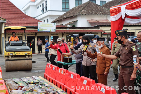 MediaSuaraMabes, Kota Magelang – Ribuan botol minuman keras (miras) hasil giat operasi di Kota Magelang dimusnahkan. Pemusnahan berlangsung di halaman Mapolres Magelang Kota, Kamis (22/12/2022).